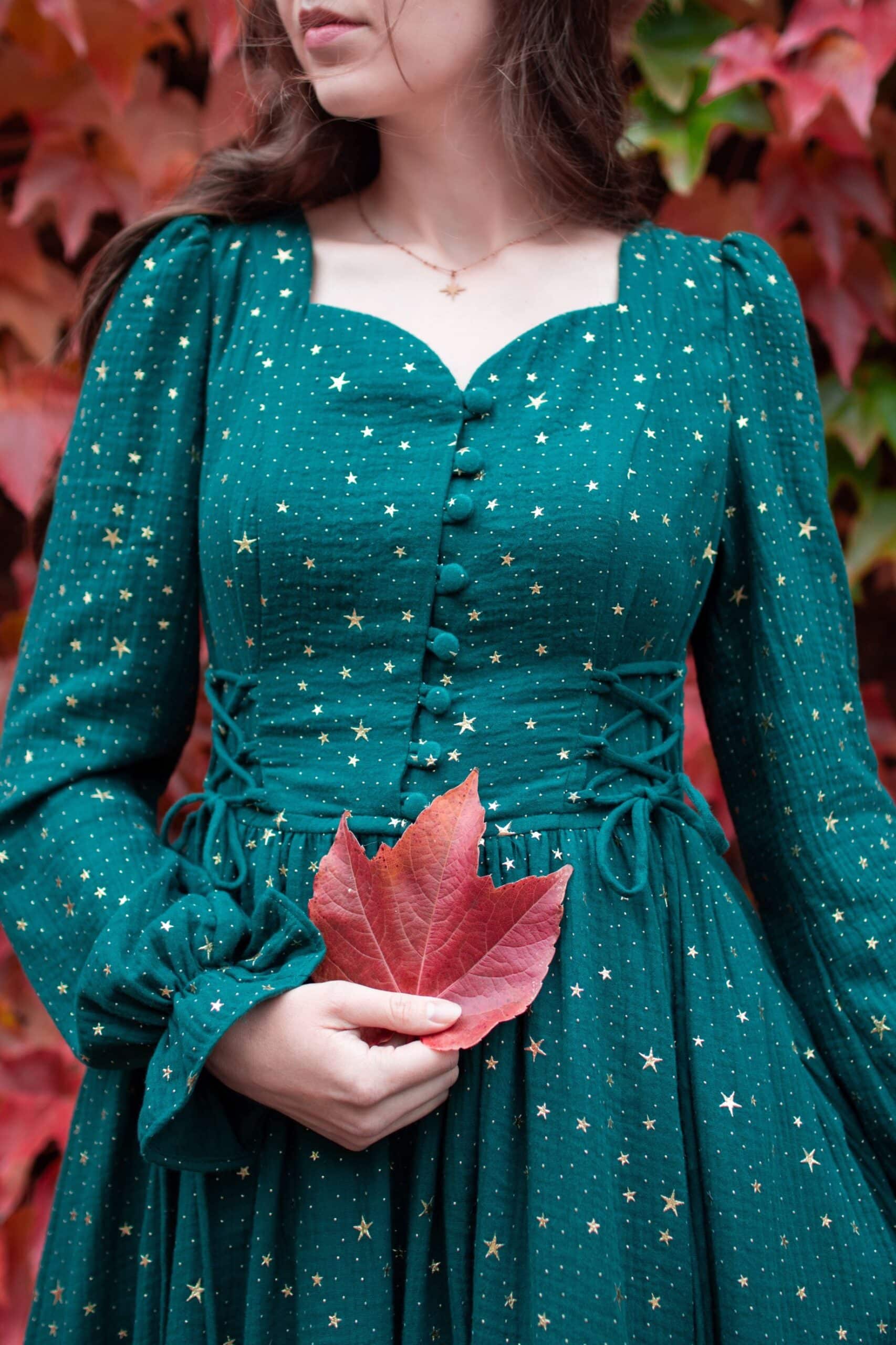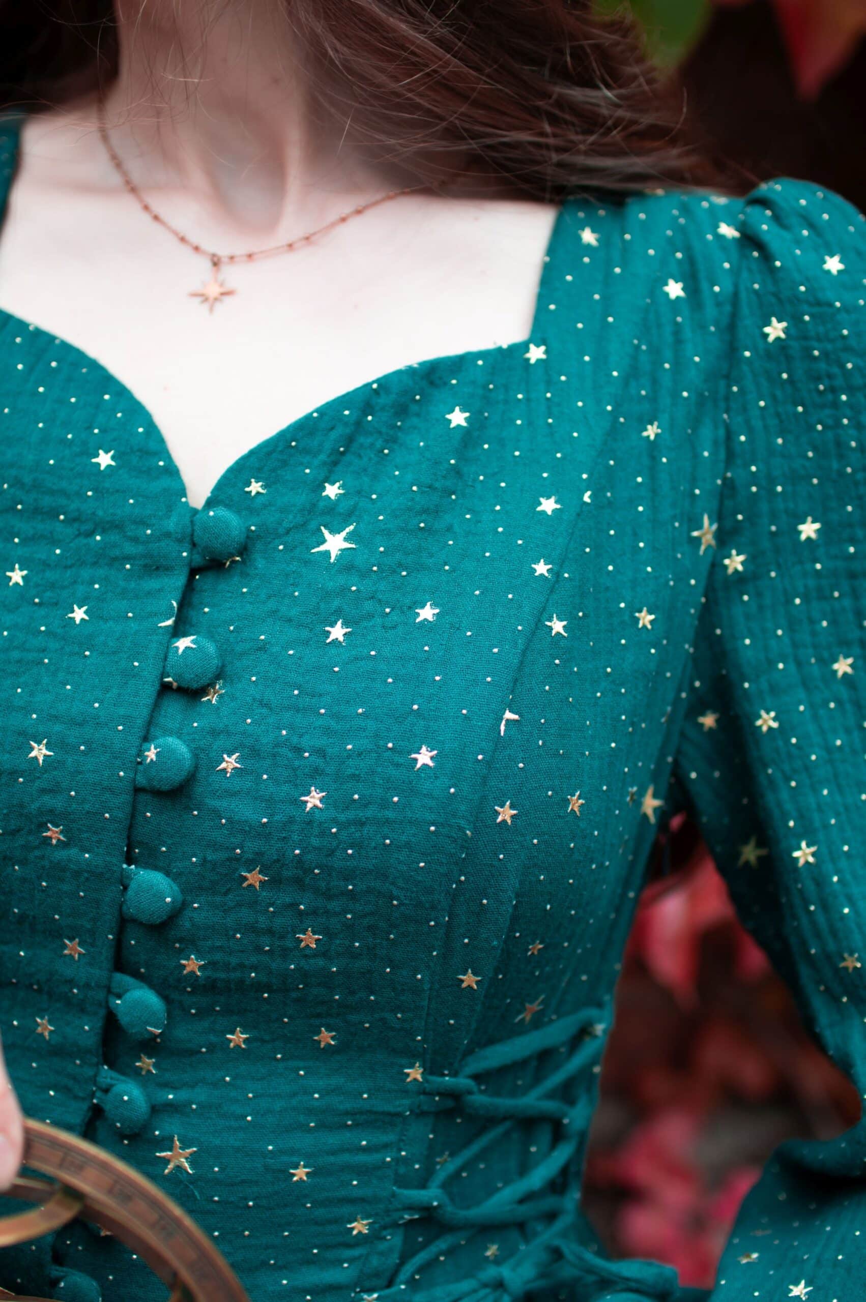 Please note that the measurements in our size chart are measurements of a person, not the item itself. For dresses we always add a couple of centimetres of extra space per each measurement to allow free moving and breathing. Please have that in mind when deciding which size works best for you.